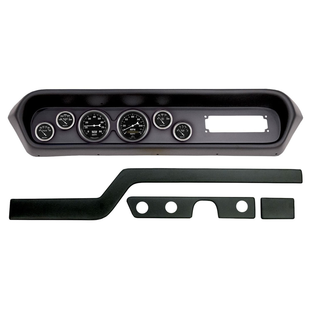 AutoMeter Old Tyme Black Series instrument clusters provide a custom performance instrumentation solution without the custom fab price. These easy-to-install direct-fit gauge/dash kits include a set of iconic Old Tyme Black Series gauges featuring matte black dials, vintage artwork, arrow pointers, domed lenses and bright chrome bezels. The kits will also include precision engineered direct-fit dash panel/gauge adapter plate, wiring harness, senders, and all the essentials needed to complete the installation. AutoMeter instrument clusters are complete package solutions that simplify the process of gauge installation while providing a clean, timeless look. They are available in many different 2-, 5-, and 6-piece configurations to outfit a variety of classic cars and trucks with modern performance.