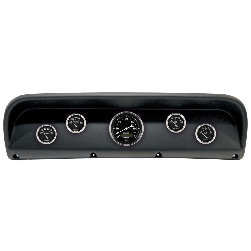 AutoMeter Old Tyme Black Series instrument clusters provide a custom performance instrumentation solution without the custom fab price. These easy-to-install direct-fit gauge/dash kits include a set of iconic Old Tyme Black Series gauges featuring matte black dials, vintage artwork, arrow pointers, domed lenses and bright chrome bezels. The kits will also include precision engineered direct-fit dash panel/gauge adapter plate, wiring harness, senders, and all the essentials needed to complete the installation. AutoMeter instrument clusters are complete package solutions that simplify the process of gauge installation while providing a clean, timeless look. They are available in many different 2-, 5-, and 6-piece configurations to outfit a variety of classic cars and trucks with modern performance.