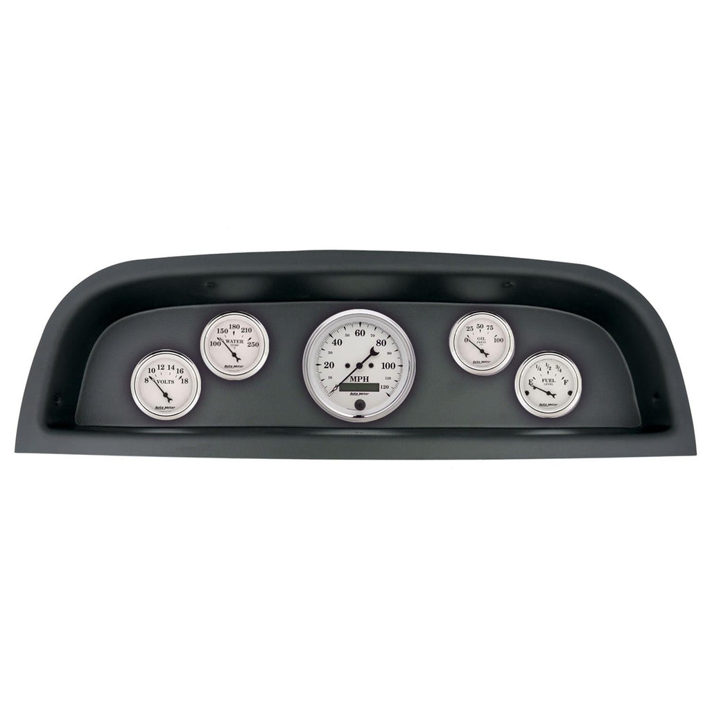 AutoMeter Old Tyme White Series instrument clusters provide a custom performance instrumentation solution without the custom fab price. These easy-to-install direct-fit gauge/dash kits include a set of iconic Old Tyme White Series gauges featuring polar white dials, vintage artwork, arrow pointers, domed lenses, and bright chrome bezels with warm white perimeter dial lighting. The kits will also include precision engineered direct-fit dash panel/gauge adapter plate or rings, wiring harness, senders, and all the essentials needed to complete the installation. AutoMeter instrument clusters are complete package solutions that simplify the process of gauge installation while providing a clean, timeless look. They are available in many different 2-, 5-, and 6-piece configurations to outfit a variety of classic cars and trucks with modern performance.