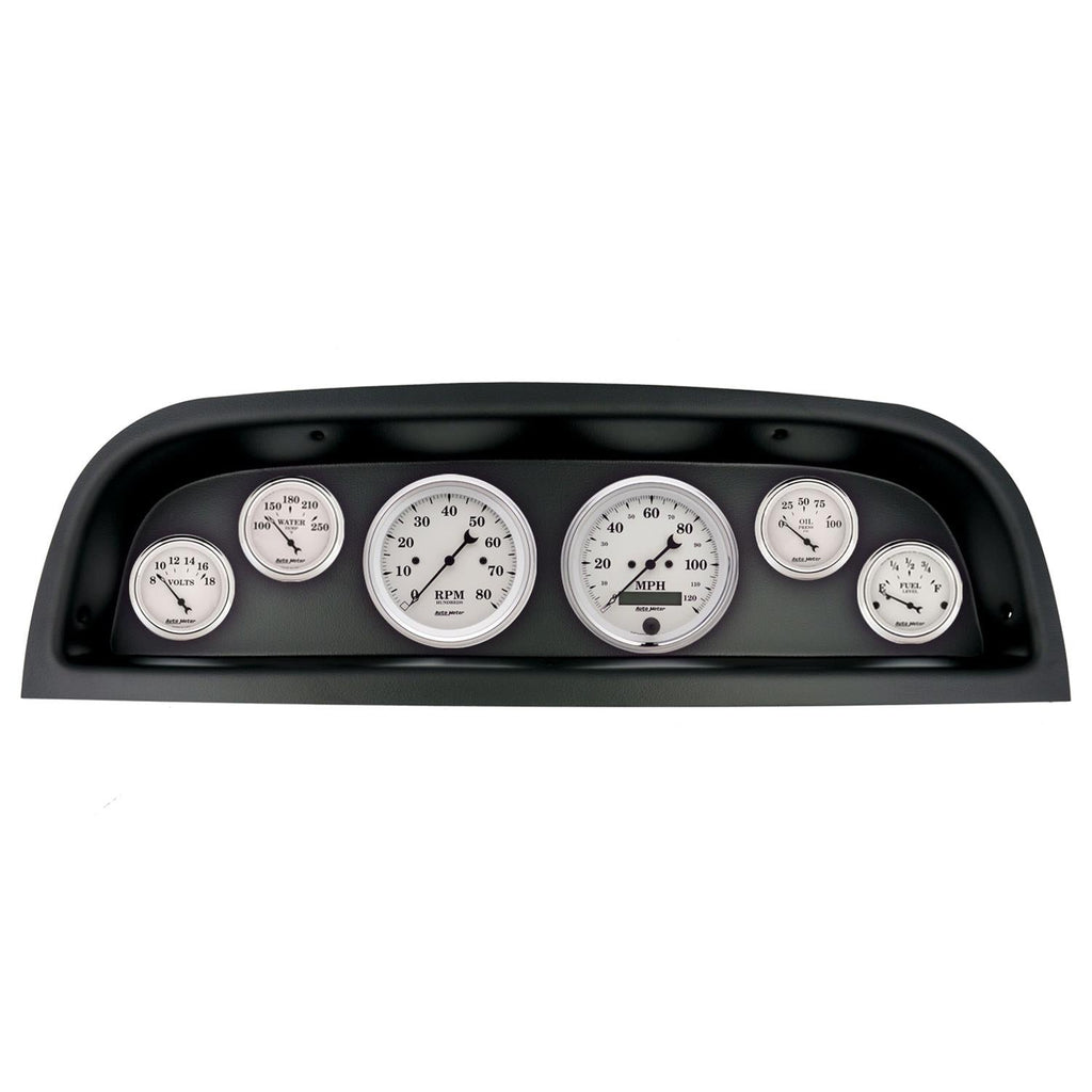 AutoMeter Old Tyme White Series instrument clusters provide a custom performance instrumentation solution without the custom fab price. These easy-to-install direct-fit gauge/dash kits include a set of iconic Old Tyme White Series gauges featuring polar white dials, vintage artwork, arrow pointers, domed lenses, and bright chrome bezels with warm white perimeter dial lighting. The kits will also include precision engineered direct-fit dash panel/gauge adapter plate or rings, wiring harness, senders, and all the essentials needed to complete the installation. AutoMeter instrument clusters are complete package solutions that simplify the process of gauge installation while providing a clean, timeless look. They are available in many different 2-, 5-, and 6-piece configurations to outfit a variety of classic cars and trucks with modern performance.