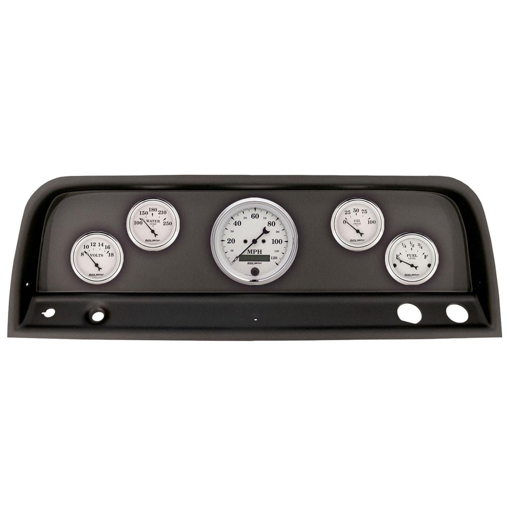 AutoMeter Old Tyme White Series instrument clusters provide a custom performance instrumentation solution without the custom fab price. These easy-to-install direct-fit gauge/dash kits include a set of iconic Old Tyme White Series gauges featuring polar white dials, vintage artwork, arrow pointers, domed lenses, and bright chrome bezels with warm white perimeter dial lighting. The kits will also include precision engineered direct-fit dash panel/gauge adapter plate or rings, wiring harness, senders, and all the essentials needed to complete the installation. AutoMeter instrument clusters are complete package solutions that simplify the process of gauge installation while providing a clean, timeless look. They are available in many different 2-, 5-, and 6-piece configurations to outfit a variety of classic cars and trucks with modern performance.