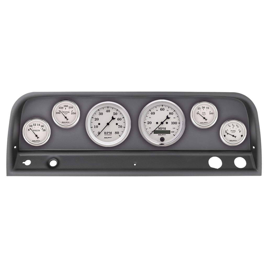 AutoMeter Old Tyme White Series instrument clusters provide a custom performance instrumentation solution without the custom fab price. These easy-to-install direct-fit gauge/dash kits include a set of iconic Old Tyme White Series gauges featuring polar white dials, vintage artwork, arrow pointers, domed lenses, and bright chrome bezels with warm white perimeter dial lighting. The kits will also include precision engineered direct-fit dash panel/gauge adapter plate or rings, wiring harness, senders, and all the essentials needed to complete the installation. AutoMeter instrument clusters are complete package solutions that simplify the process of gauge installation while providing a clean, timeless look. They are available in many different 2-, 5-, and 6-piece configurations to outfit a variety of classic cars and trucks with modern performance.