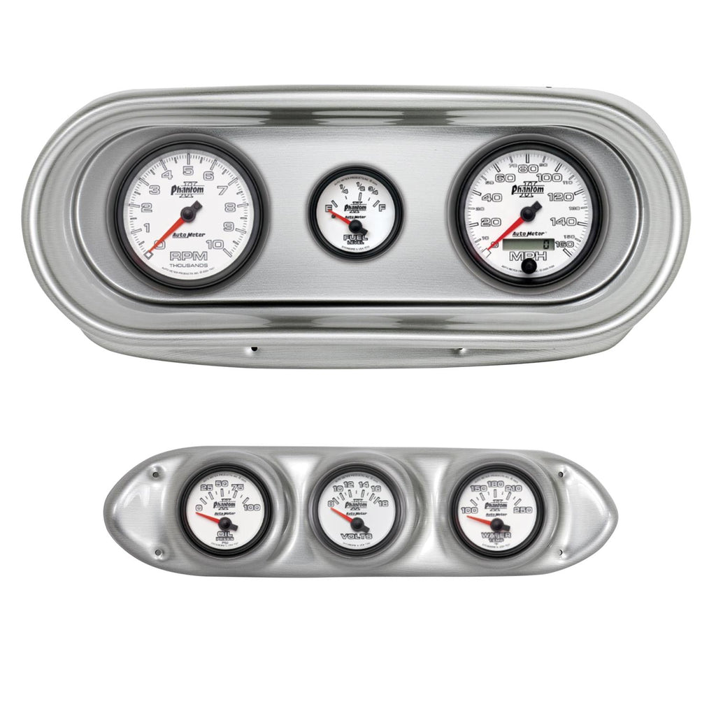 AutoMeter Phantom II instrument clusters are available in a variety of 5- and 6-gauge layouts. These replacement gauges are available mounted in direct-fit replacement dash panels. The easy-to-install packages include stunning Phantom II gauges (of different diameters), featuring large outlined silver numerals on a white background for an inconspicuous look. Black bezels and panels provide a stylish, modern contrast. The cluster layouts are application-specific; order the model recommended for your vehicle.Brand: AutoMeter