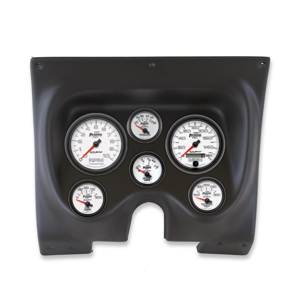 AutoMeter Phantom II instrument clusters are available in a variety of 5- and 6-gauge layouts. These replacement gauges are available mounted in direct-fit replacement dash panels. The easy-to-install packages include stunning Phantom II gauges (of different diameters), featuring large outlined silver numerals on a white background for an inconspicuous look. Black bezels and panels provide a stylish, modern contrast. The cluster layouts are application-specific; order the model recommended for your vehicle.Brand: AutoMeter