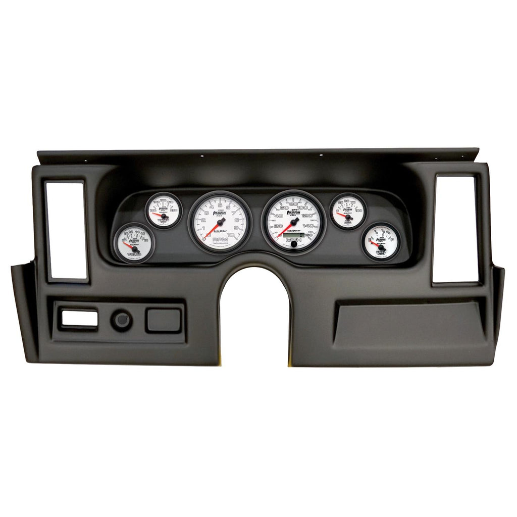 AutoMeter Phantom II instrument clusters are available in a variety of 5- and 6-gauge layouts. These replacement gauges are available mounted in direct-fit replacement dash panels. The easy-to-install packages include stunning Phantom II gauges (of different diameters), featuring large outlined silver numerals on a white background for an inconspicuous look. Black bezels and panels provide a stylish, modern contrast. The cluster layouts are application-specific; order the model recommended for your vehicle.Brand: AutoMeter