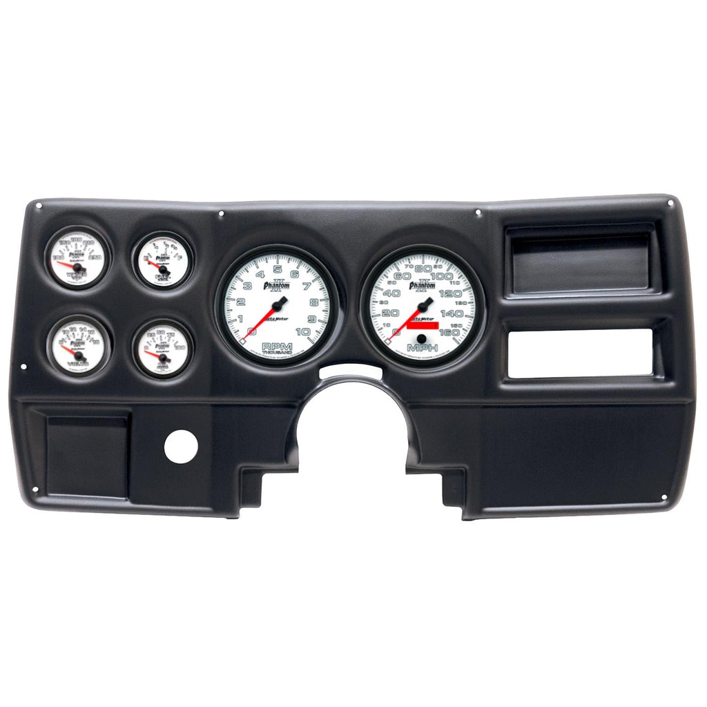 AutoMeter Phantom II instrument clusters are available in a variety of 5- and 6-gauge layouts. These replacement gauges are available mounted in direct-fit replacement dash panels. The easy-to-install packages include stunning Phantom II gauges (of different diameters), featuring large outlined silver numerals on a white background for an inconspicuous look. Black bezels and panels provide a stylish, modern contrast. The cluster layouts are application-specific; order the model recommended for your vehicle.Brand: AutoMeter