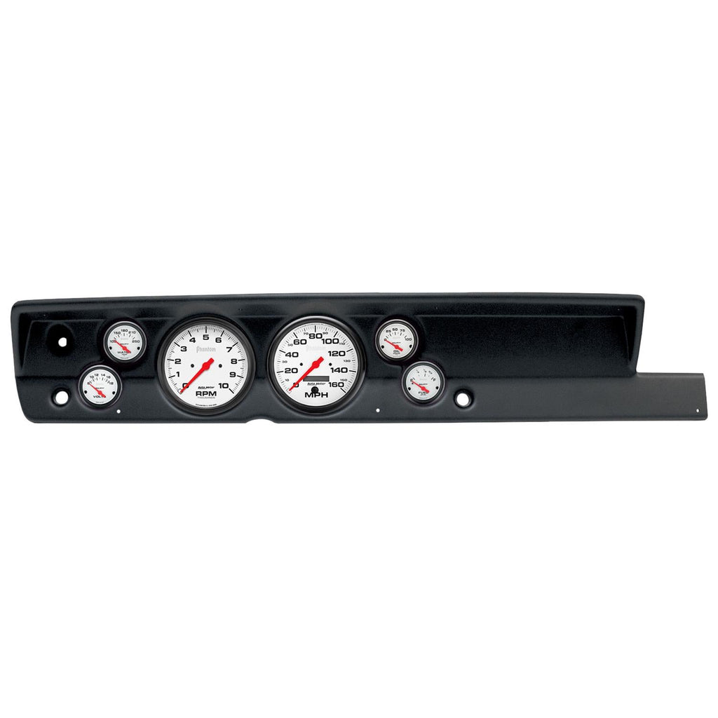 AutoMeter Phantom instrument clusters are available in a variety of 6-gauge layouts. These replacement dials are available mounted in direct-fit replacement dash panels. The easy-to-install packages include stunning Phantom gauges (of different diameters), featuring bold black numerals on a white background for a clean and easily readable look. Black bezels and panels provide a stylish, modern contrast. AutoMeter cluster layouts are application-specific for classic muscle cars, trucks, and more. Order the model recommended for your vehicle.Brand: AutoMeter