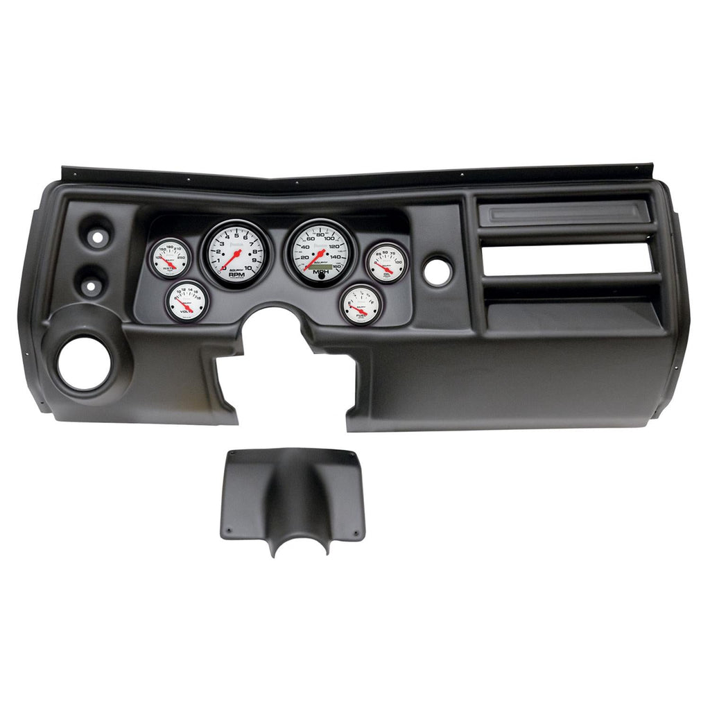 AutoMeter Phantom instrument clusters are available in a variety of 6-gauge layouts. These replacement dials are available mounted in direct-fit replacement dash panels. The easy-to-install packages include stunning Phantom gauges (of different diameters), featuring bold black numerals on a white background for a clean and easily readable look. Black bezels and panels provide a stylish, modern contrast. AutoMeter cluster layouts are application-specific for classic muscle cars, trucks, and more. Order the model recommended for your vehicle.Brand: AutoMeter