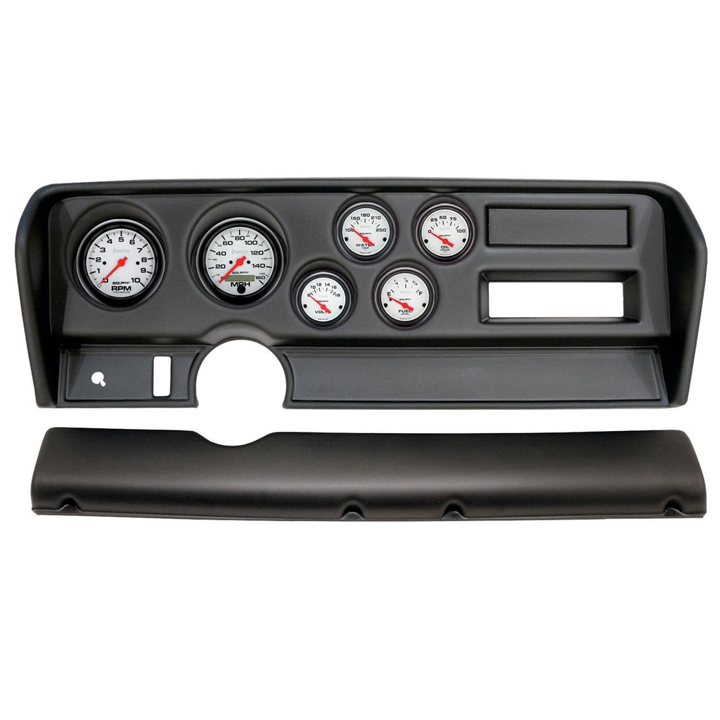 AutoMeter Phantom instrument clusters are available in a variety of 6-gauge layouts. These replacement dials are available mounted in direct-fit replacement dash panels. The easy-to-install packages include stunning Phantom gauges (of different diameters), featuring bold black numerals on a white background for a clean and easily readable look. Black bezels and panels provide a stylish, modern contrast. AutoMeter cluster layouts are application-specific for classic muscle cars, trucks, and more. Order the model recommended for your vehicle.Brand: AutoMeter