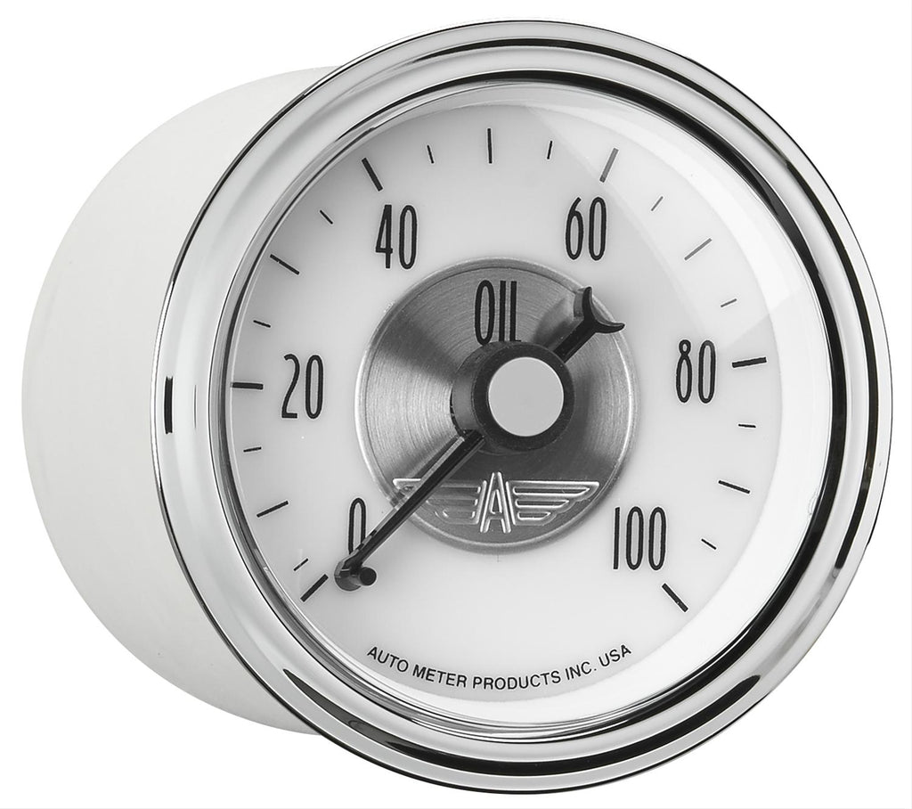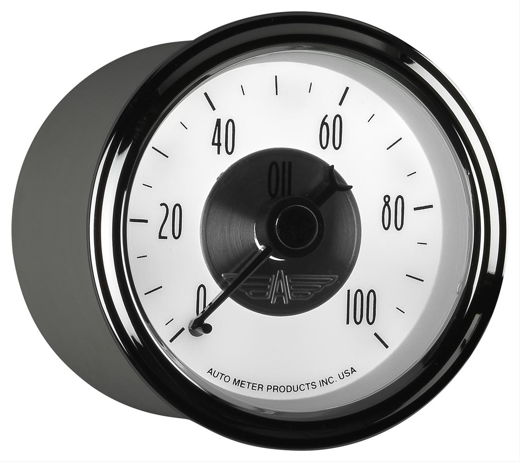 AutoMeter Prestige analog gauges combine vintage styling and modern technology. They can give your hot rod or muscle car interior a historically accurate look. Dynamic features include: illuminated faces and needles, one-touch speedometer calibration, domed lenses, chrome bezels, full-sweep mechanical movements, arrow-styled needles, a soft luminous glow, and the very best in accuracy and precision. The compact dials are available in black, ivory, and white faces. Monitor your fuel level, oil pressure, water temperature, volts, and more—with Prestige gauges from AutoMeter.Brand: AutoMeter