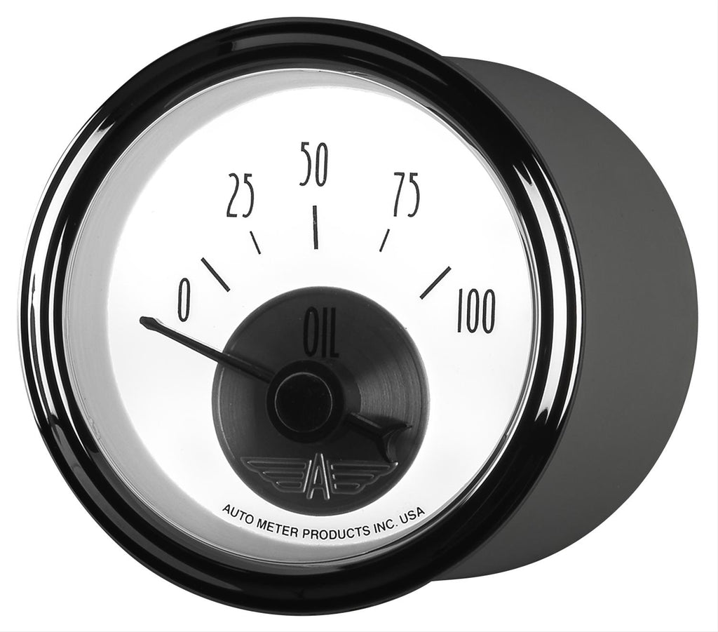 AutoMeter Prestige analog gauges combine vintage styling and modern technology. They can give your hot rod or muscle car interior a historically accurate look. Dynamic features include: illuminated faces and needles, one-touch speedometer calibration, domed lenses, chrome bezels, full-sweep mechanical movements, arrow-styled needles, a soft luminous glow, and the very best in accuracy and precision. The compact dials are available in black, ivory, and white faces. Monitor your fuel level, oil pressure, water temperature, volts, and more—with Prestige gauges from AutoMeter.Brand: AutoMeter