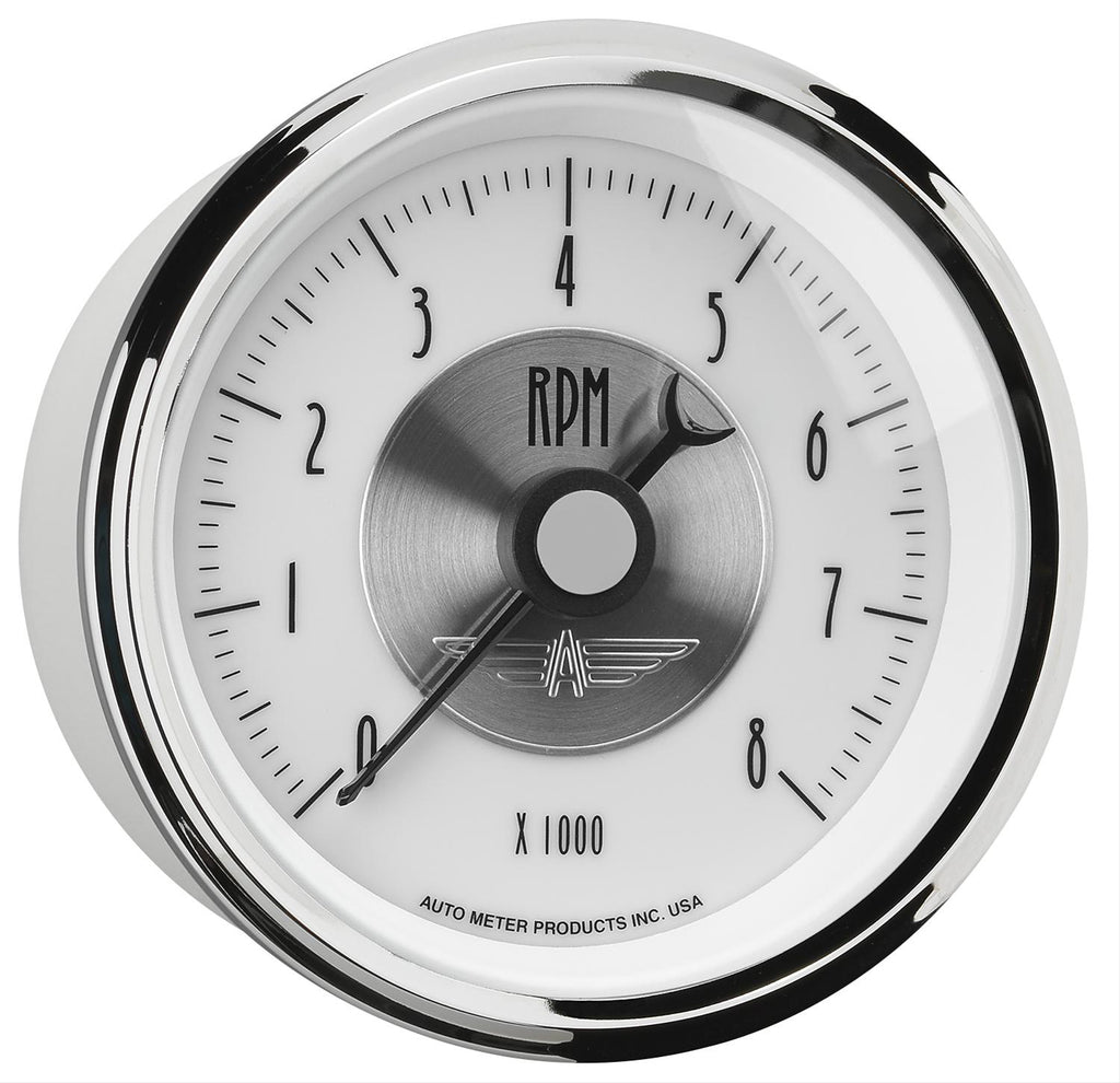 AutoMeter Prestige analog tachometers combine accuracy and classic appeal in one essential gauge. Arrow-styled needles and period-correct fonts create a vintage look, while AutoMeter's state-of-the-art technology provides the precise data that you need. These 3 3/8 in. dials are offered in a black, white, or antique ivory face with contrasting numerals. All models are illuminated.Brand: AutoMeter
