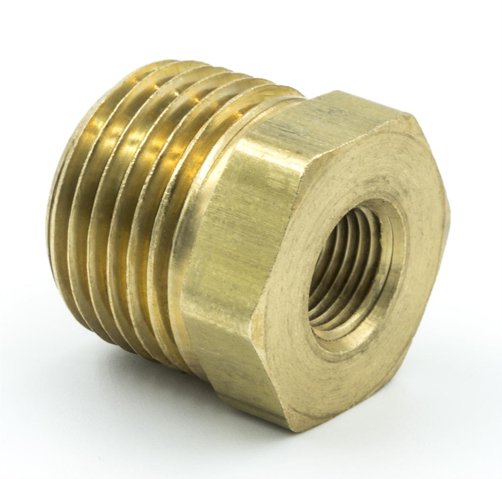 AutoMeter reducers are the right connections for your gauges. These brass fittings are available in a variety of NPT sizes. Order the model needed to help install your instruments.