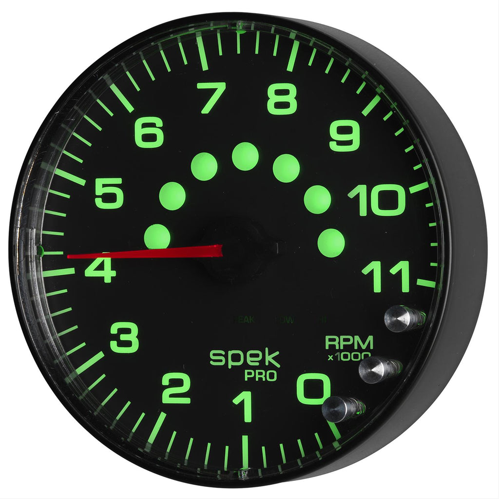 AutoMeter Spek-Pro tachometers deliver racing performance. These NASCAR-accepted and NHRA-approved gauges offer innovative features to provide you with accurate rpm. They're electric, microprocessor-based, and employ a stepper motor for precise needle reads. Hand-built and tested in the USA, Spek-Pro tachometers are easy to read with their wide-angle design and patented illumination. Choose a lens, face, and bezel to customize your race car instrumentation. AutoMeter tachs are available in 2 1/16 in. and 5 in. sizes. The 5 in. models include built-in Heads UP redline shift lights and pit-row software. These gauges are compatible with a wide range of engine types. Equip your race car with the pros' choice—an AutoMeter Spek-Pro tachometer.Brand: AutoMeter