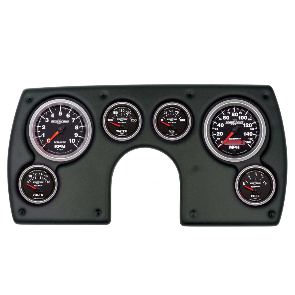 AutoMeter Sport-Comp II instrument clusters are available in a variety of 5- and 6-gauge layouts. These replacement dials are available mounted in direct-fit replacement dash panels. The easy-to-install packages include stunning Sport-Comp II gauges (of different diameters), featuring bold white numerals on a black background for a clean and easily readable look. Silver bezels and black panels provide a stylish, modern contrast. AutoMeter cluster layouts are application-specific for classic muscle cars, trucks, and more. Order the model recommended for your vehicle.