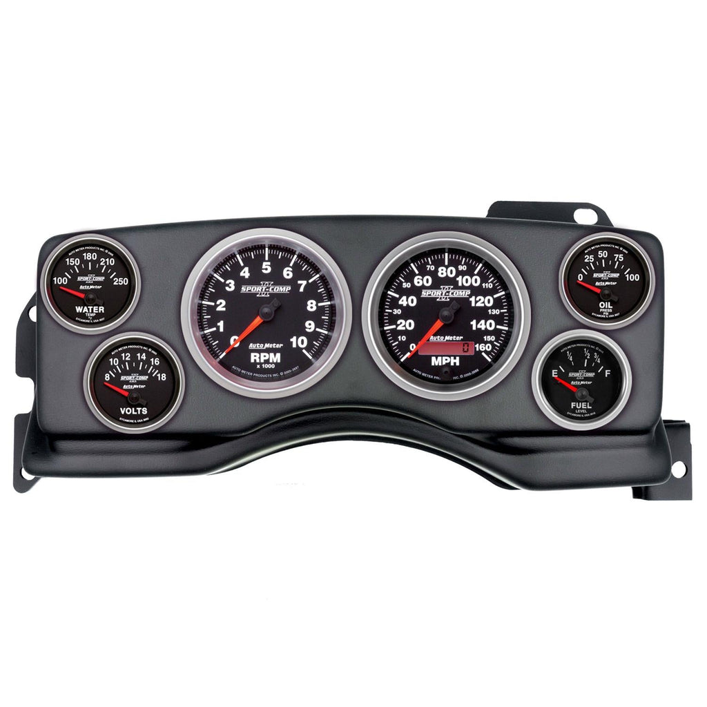 AutoMeter Sport-Comp II instrument clusters are available in a variety of 5- and 6-gauge layouts. These replacement dials are available mounted in direct-fit replacement dash panels. The easy-to-install packages include stunning Sport-Comp II gauges (of different diameters), featuring bold white numerals on a black background for a clean and easily readable look. Silver bezels and black panels provide a stylish, modern contrast. AutoMeter cluster layouts are application-specific for classic muscle cars, trucks, and more. Order the model recommended for your vehicle.