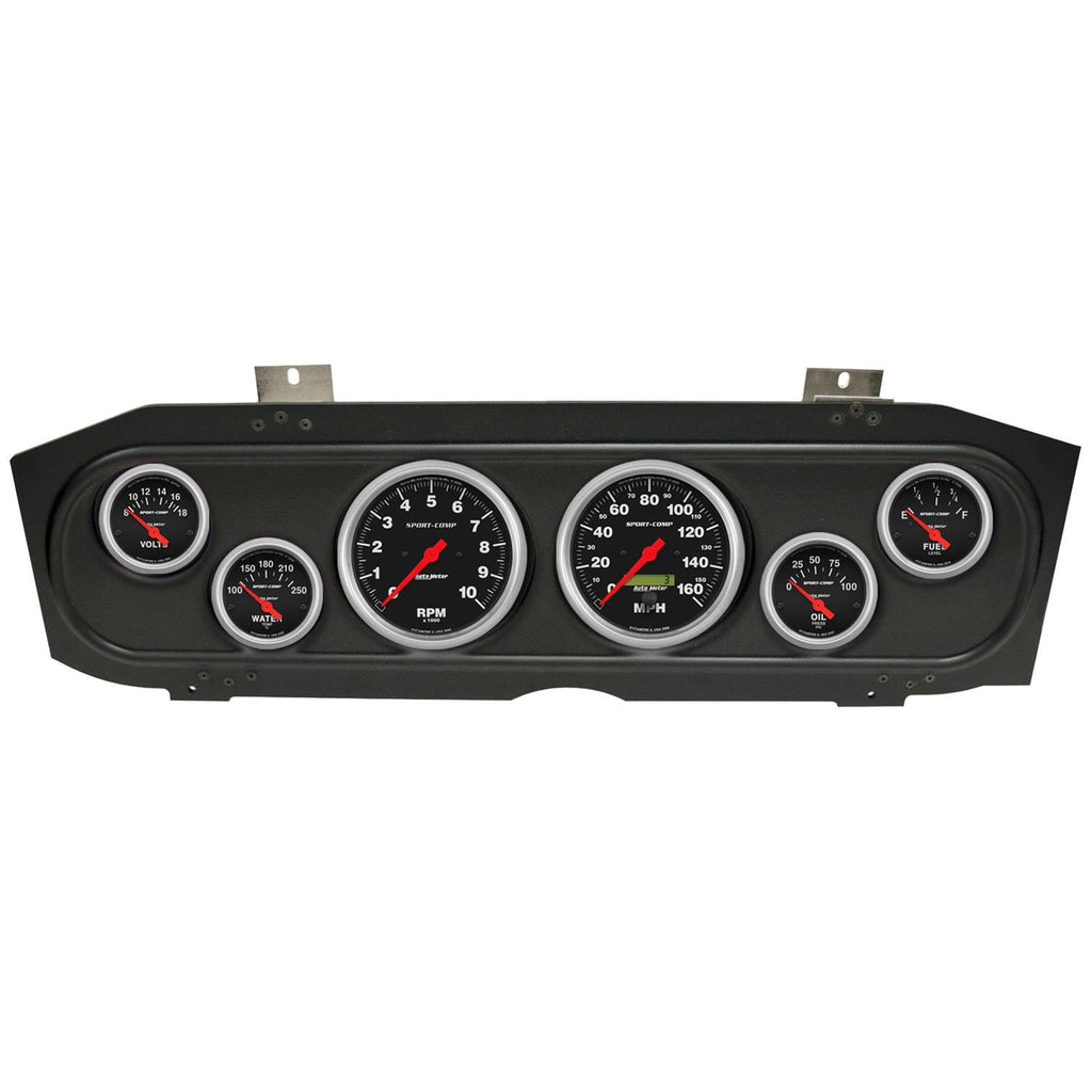 AutoMeter Sport-Comp instrument clusters outfit your classic muscle car or truck with direct-fit kits that offer a custom performance solution without the custom price! The Sport-Comp kits include a set of 6 iconic AutoMeter gauges featuring traditional incandescent lighting that illuminates around the perimeter of the dials, plus a rugged, durable, and paintable thermoformed ABS plastic dash panel. The instrument clusters are easy to install and require no cutting or modifications to your original dash. They also are designed with cutouts, where applicable, for factory accessory controls, air vents, and radio. Track your engine's vitals in real-time with highly responsive and accurate electric air-core gauges inside AutoMeter instrument clusters.