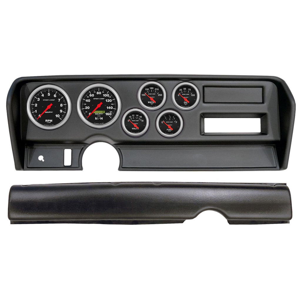 AutoMeter Sport-Comp instrument clusters outfit your classic muscle car or truck with direct-fit kits that offer a custom performance solution without the custom price! The Sport-Comp kits include a set of 6 iconic AutoMeter gauges featuring traditional incandescent lighting that illuminates around the perimeter of the dials, plus a rugged, durable, and paintable thermoformed ABS plastic dash panel. The instrument clusters are easy to install and require no cutting or modifications to your original dash. They also are designed with cutouts, where applicable, for factory accessory controls, air vents, and radio. Track your engine's vitals in real-time with highly responsive and accurate electric air-core gauges inside AutoMeter instrument clusters.
