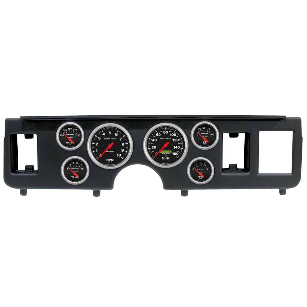AutoMeter Sport-Comp instrument clusters outfit your classic muscle car or truck with direct-fit kits that offer a custom performance solution without the custom price! The Sport-Comp kits include a set of 6 iconic AutoMeter gauges featuring traditional incandescent lighting that illuminates around the perimeter of the dials, plus a rugged, durable, and paintable thermoformed ABS plastic dash panel. The instrument clusters are easy to install and require no cutting or modifications to your original dash. They also are designed with cutouts, where applicable, for factory accessory controls, air vents, and radio. Track your engine's vitals in real-time with highly responsive and accurate electric air-core gauges inside AutoMeter instrument clusters.