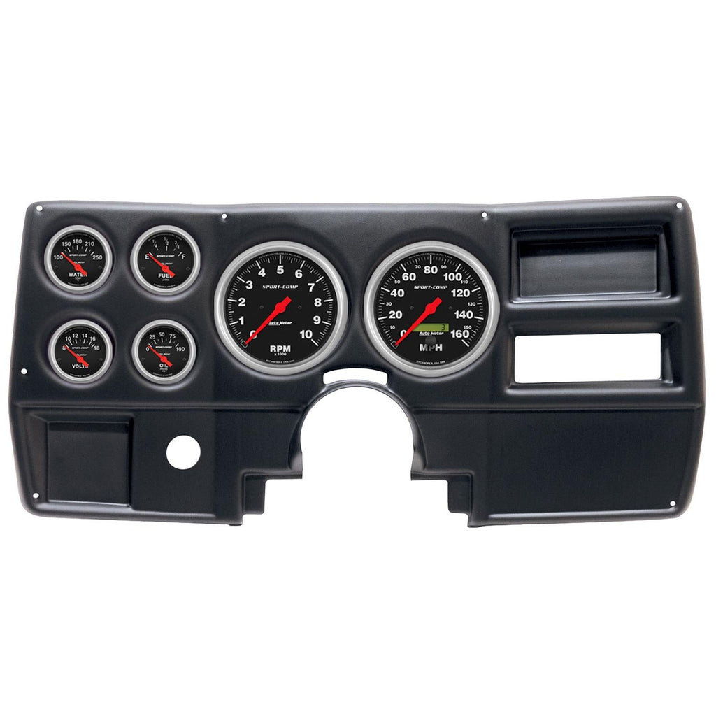 AutoMeter Sport-Comp instrument clusters outfit your classic muscle car or truck with direct-fit kits that offer a custom performance solution without the custom price! The Sport-Comp kits include a set of 6 iconic AutoMeter gauges featuring traditional incandescent lighting that illuminates around the perimeter of the dials, plus a rugged, durable, and paintable thermoformed ABS plastic dash panel. The instrument clusters are easy to install and require no cutting or modifications to your original dash. They also are designed with cutouts, where applicable, for factory accessory controls, air vents, and radio. Track your engine's vitals in real-time with highly responsive and accurate electric air-core gauges inside AutoMeter instrument clusters.