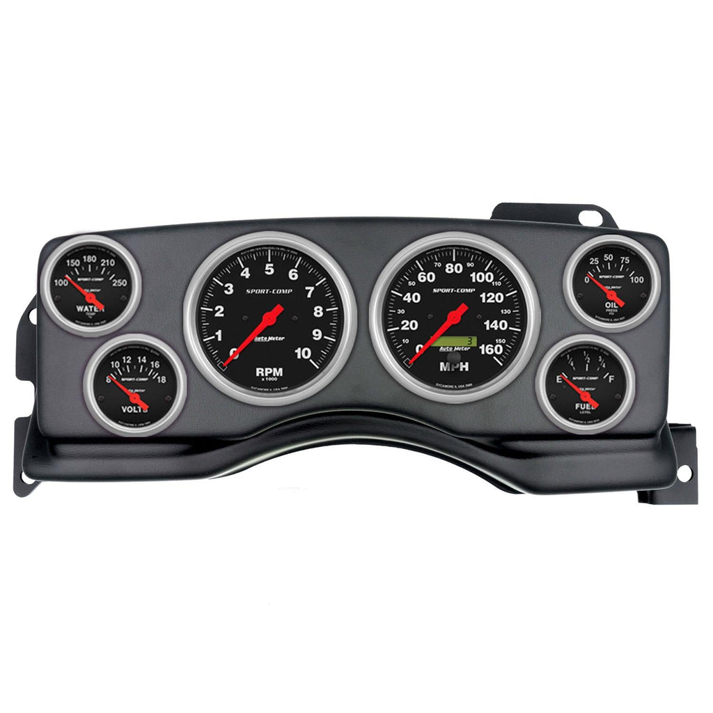 AutoMeter Sport-Comp instrument clusters outfit your classic muscle car or truck with direct-fit kits that offer a custom performance solution without the custom price! The Sport-Comp kits include a set of 6 iconic AutoMeter gauges featuring traditional incandescent lighting that illuminates around the perimeter of the dials, plus a rugged, durable, and paintable thermoformed ABS plastic dash panel. The instrument clusters are easy to install and require no cutting or modifications to your original dash. They also are designed with cutouts, where applicable, for factory accessory controls, air vents, and radio. Track your engine's vitals in real-time with highly responsive and accurate electric air-core gauges inside AutoMeter instrument clusters.