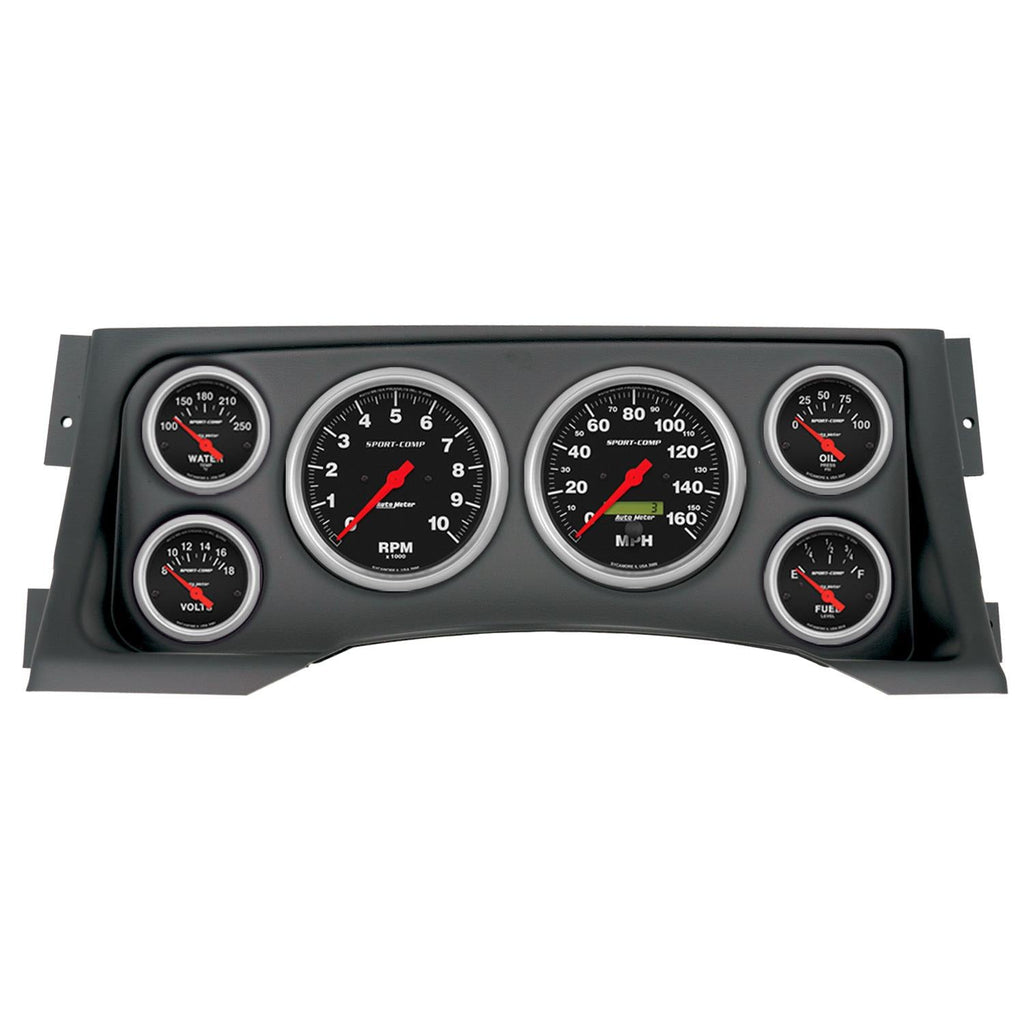 AutoMeter Sport-Comp instrument clusters outfit your classic muscle car or truck with direct-fit kits that offer a custom performance solution without the custom price! The Sport-Comp kits include a set of 6 iconic AutoMeter gauges featuring traditional incandescent lighting that illuminates around the perimeter of the dials, plus a rugged, durable, and paintable thermoformed ABS plastic dash panel. The instrument clusters are easy to install and require no cutting or modifications to your original dash. They also are designed with cutouts, where applicable, for factory accessory controls, air vents, and radio. Track your engine's vitals in real-time with highly responsive and accurate electric air-core gauges inside AutoMeter instrument clusters.