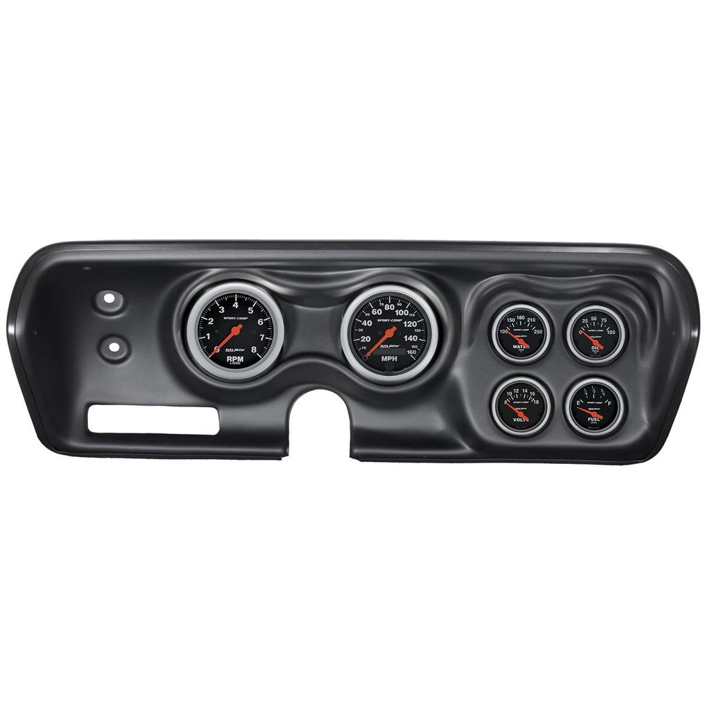 AutoMeter Sport-Comp instrument clusters outfit your classic muscle car or truck with direct-fit kits that offer a custom performance solution without the custom price! The Sport-Comp kits include a set of 6 iconic AutoMeter gauges featuring traditional incandescent lighting that illuminates around the perimeter of the dials, plus a rugged, durable, and paintable thermoformed ABS plastic dash panel. The instrument clusters are easy to install and require no cutting or modifications to your original dash. They also are designed with cutouts, where applicable, for factory accessory controls, air vents, and radio. Track your engine's vitals in real-time with highly responsive and accurate electric air-core gauges inside AutoMeter instrument clusters.