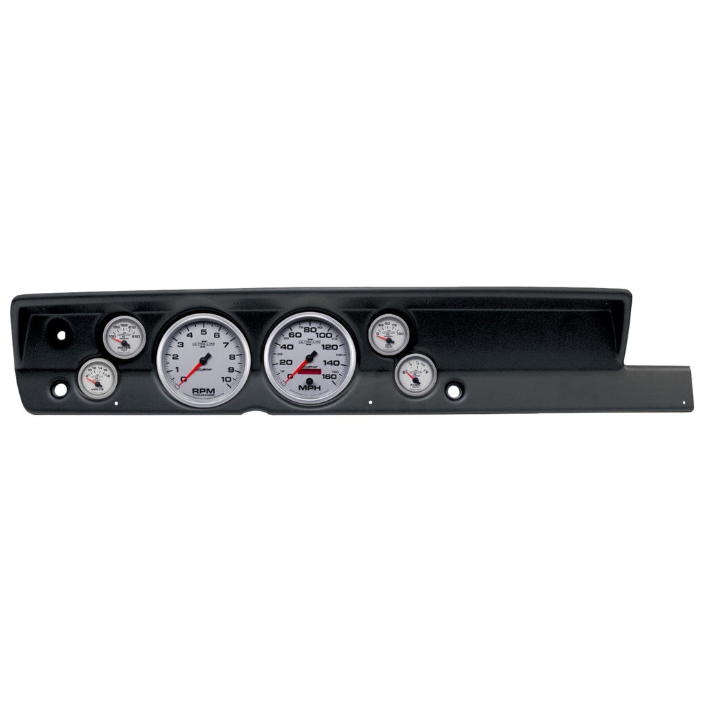 AutoMeter Ultra-Lite II instrument clusters are available in a variety of 5- and 6-gauge layouts. These replacement dials are available mounted in direct-fit replacement dash panels. The easy-to-install packages include stunning Ultra-Lite II gauges (of different diameters), featuring bold black numerals on a silver background for a clean, modern look. Silver bezels and black panels provide a stylish contrast. AutoMeter cluster layouts are application-specific for classic muscle cars, trucks, and more. Order the model recommended for your vehicle.Brand: AutoMeter