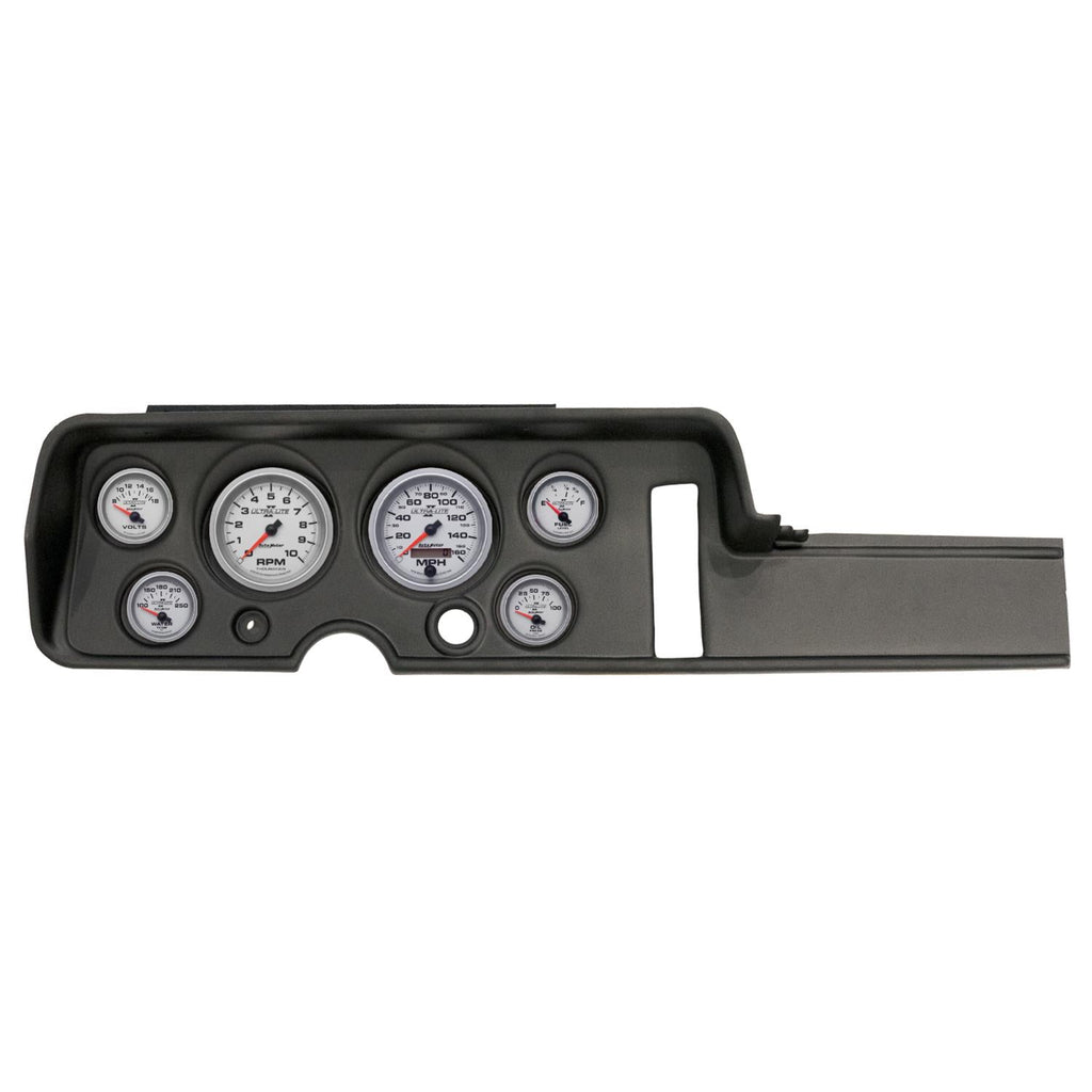 AutoMeter Ultra-Lite II instrument clusters are available in a variety of 5- and 6-gauge layouts. These replacement dials are available mounted in direct-fit replacement dash panels. The easy-to-install packages include stunning Ultra-Lite II gauges (of different diameters), featuring bold black numerals on a silver background for a clean, modern look. Silver bezels and black panels provide a stylish contrast. AutoMeter cluster layouts are application-specific for classic muscle cars, trucks, and more. Order the model recommended for your vehicle.Brand: AutoMeter