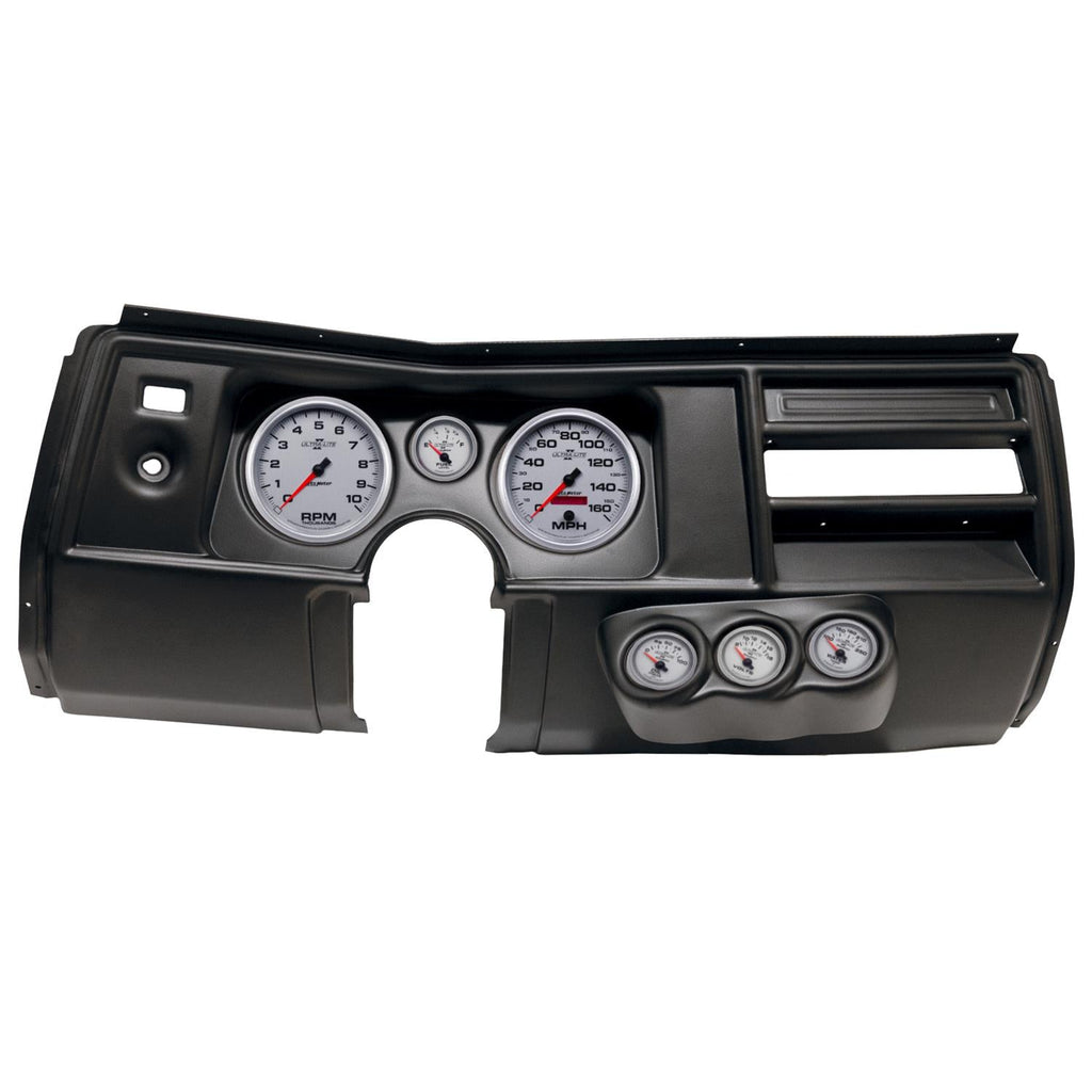 AutoMeter Ultra-Lite II instrument clusters are available in a variety of 5- and 6-gauge layouts. These replacement dials are available mounted in direct-fit replacement dash panels. The easy-to-install packages include stunning Ultra-Lite II gauges (of different diameters), featuring bold black numerals on a silver background for a clean, modern look. Silver bezels and black panels provide a stylish contrast. AutoMeter cluster layouts are application-specific for classic muscle cars, trucks, and more. Order the model recommended for your vehicle.Brand: AutoMeter