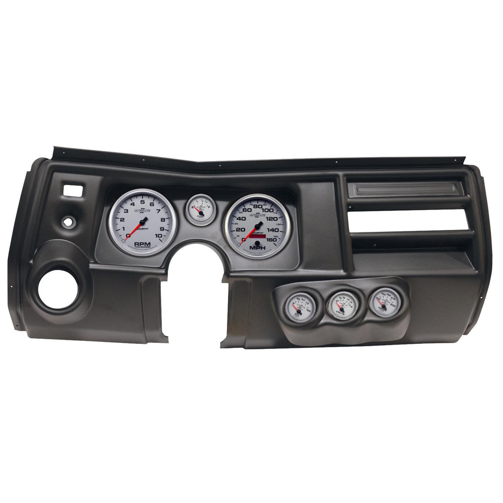 AutoMeter Ultra-Lite II instrument clusters are available in a variety of 5- and 6-gauge layouts. These replacement dials are available mounted in direct-fit replacement dash panels. The easy-to-install packages include stunning Ultra-Lite II gauges (of different diameters), featuring bold black numerals on a silver background for a clean, modern look. Silver bezels and black panels provide a stylish contrast. AutoMeter cluster layouts are application-specific for classic muscle cars, trucks, and more. Order the model recommended for your vehicle.Brand: AutoMeter