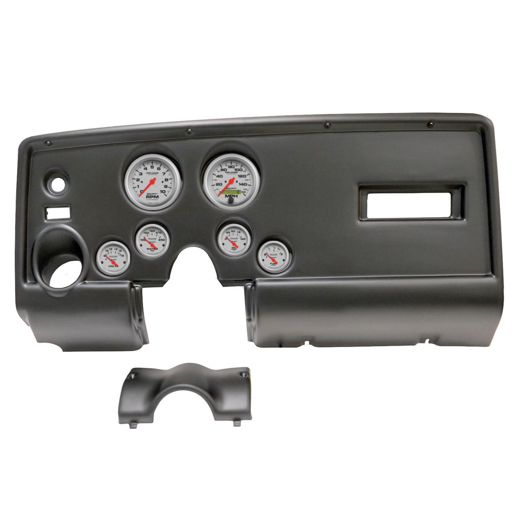 AutoMeter Ultra-Lite instrument clusters offer your classic muscle car or truck race-proven air-core electric gauges that provide quick and accurate readings. Six iconic dials are set inside a direct-fit rugged, durable, and paintable thermoformed ABS plastic dash panel. The Ultra-Lite gauges feature traditional incandescent lighting to illuminate around the perimeter of the dials, while the dash delivers an easy install without modifications to your original dash. They are designed with cutouts, where applicable, for factory accessory controls, air vents, and radio. Get custom performance instrument solutions for your vehicle without the custom price.
