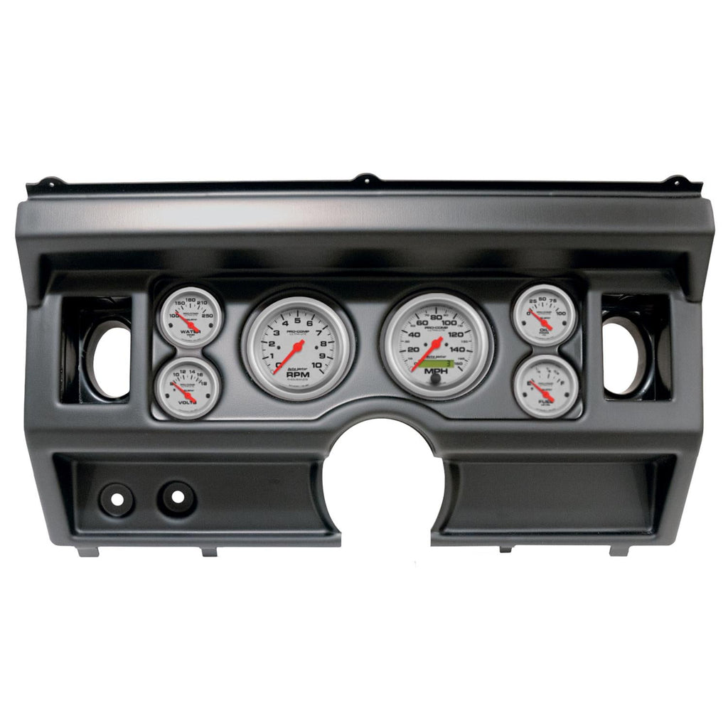 AutoMeter Ultra-Lite instrument clusters offer your classic muscle car or truck race-proven air-core electric gauges that provide quick and accurate readings. Six iconic dials are set inside a direct-fit rugged, durable, and paintable thermoformed ABS plastic dash panel. The Ultra-Lite gauges feature traditional incandescent lighting to illuminate around the perimeter of the dials, while the dash delivers an easy install without modifications to your original dash. They are designed with cutouts, where applicable, for factory accessory controls, air vents, and radio. Get custom performance instrument solutions for your vehicle without the custom price.