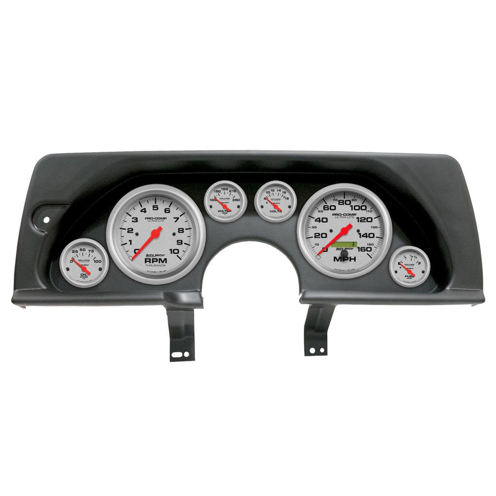 AutoMeter Ultra-Lite instrument clusters offer your classic muscle car or truck race-proven air-core electric gauges that provide quick and accurate readings. Six iconic dials are set inside a direct-fit rugged, durable, and paintable thermoformed ABS plastic dash panel. The Ultra-Lite gauges feature traditional incandescent lighting to illuminate around the perimeter of the dials, while the dash delivers an easy install without modifications to your original dash. They are designed with cutouts, where applicable, for factory accessory controls, air vents, and radio. Get custom performance instrument solutions for your vehicle without the custom price.