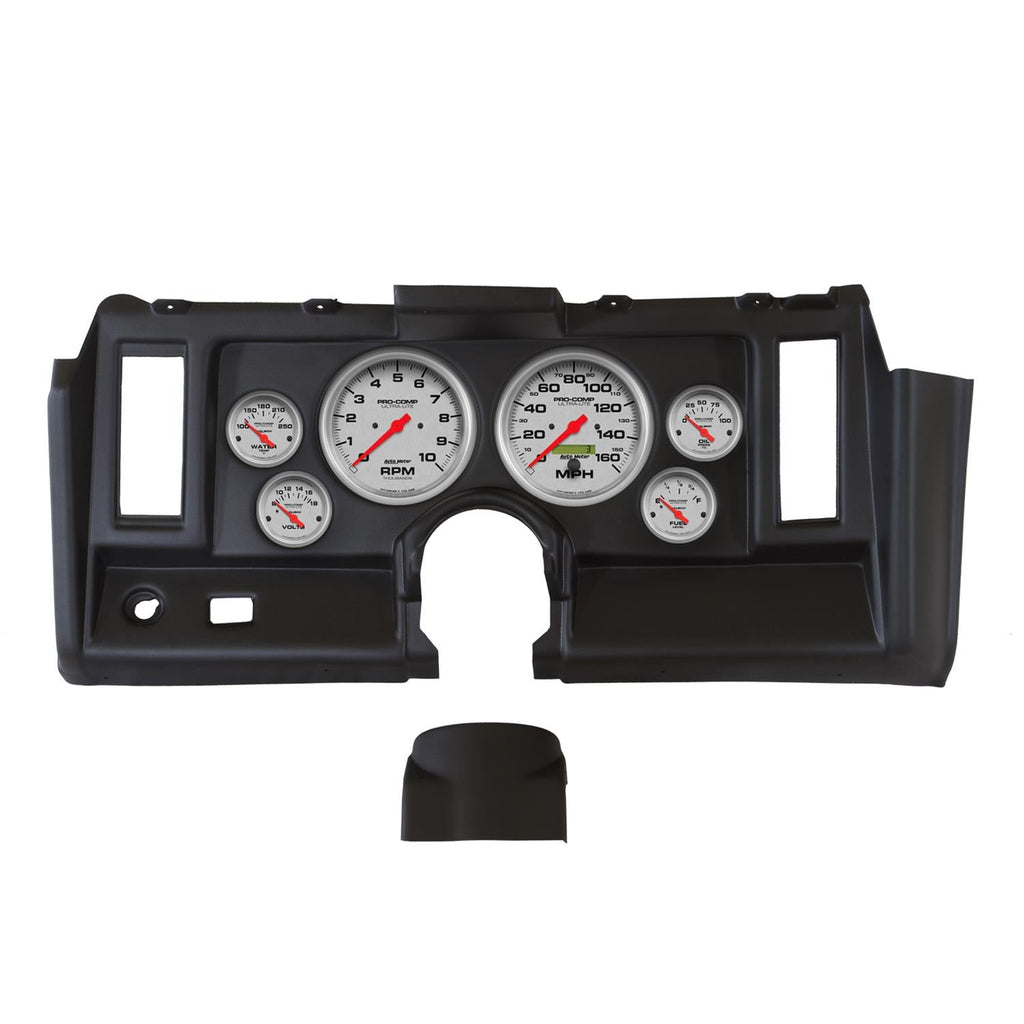 AutoMeter Ultra-Lite instrument clusters offer your classic muscle car or truck race-proven air-core electric gauges that provide quick and accurate readings. Six iconic dials are set inside a direct-fit rugged, durable, and paintable thermoformed ABS plastic dash panel. The Ultra-Lite gauges feature traditional incandescent lighting to illuminate around the perimeter of the dials, while the dash delivers an easy install without modifications to your original dash. They are designed with cutouts, where applicable, for factory accessory controls, air vents, and radio. Get custom performance instrument solutions for your vehicle without the custom price.