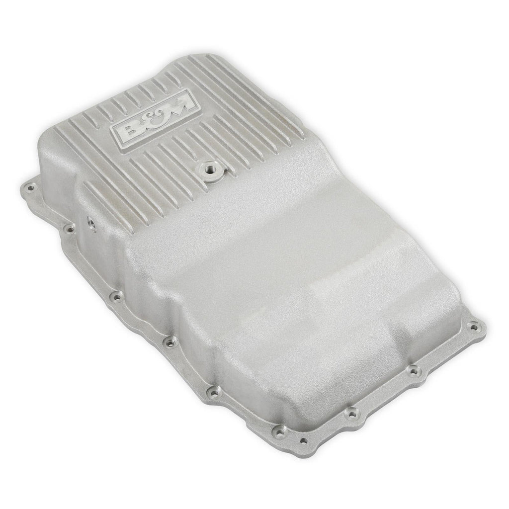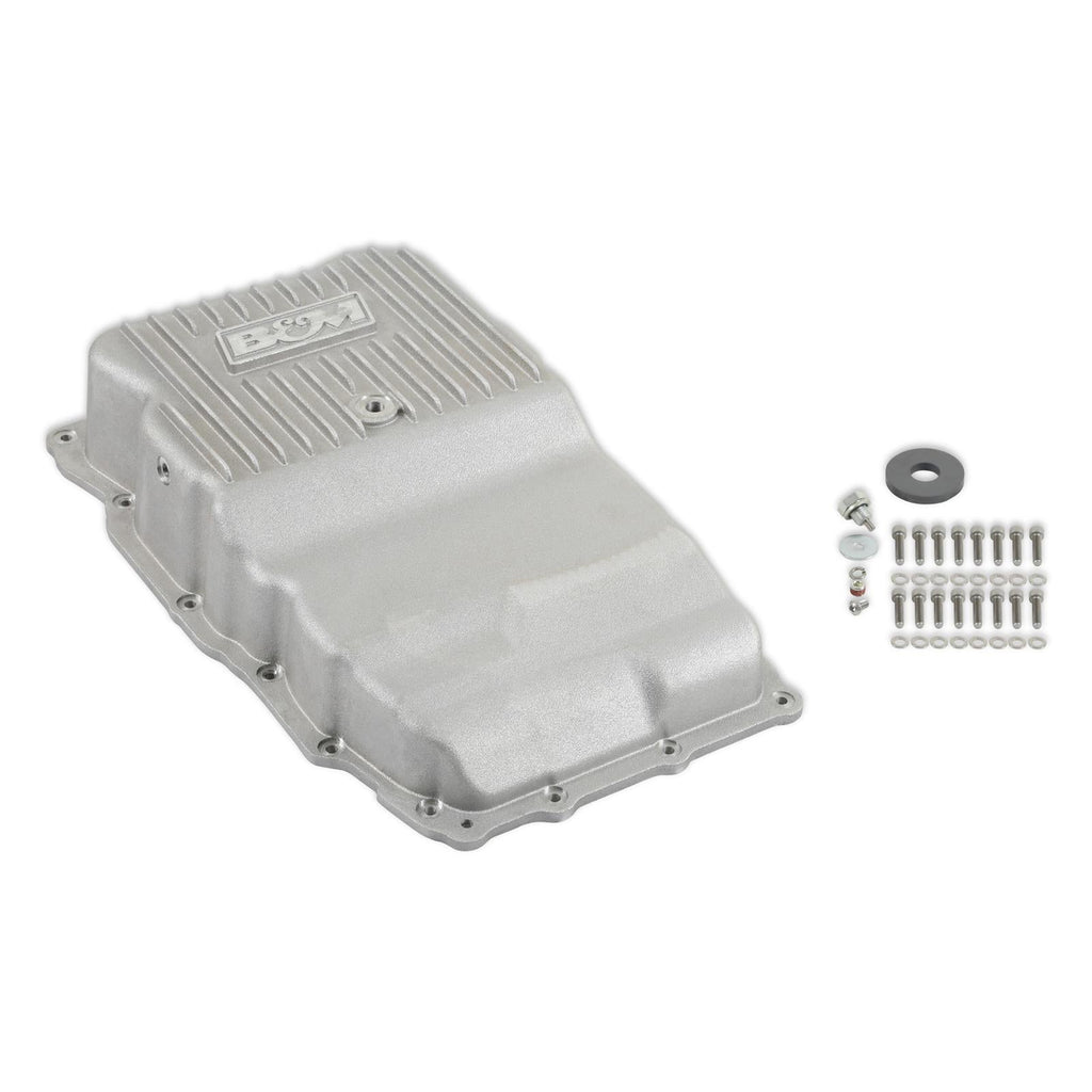 B&M automatic transmission deep pans provide additional fluid capacity and cooling ability. No modifications to the dipstick are needed. They include a drain plug for clean and easy fluid changes, and are available in chrome or cast aluminum. Filter extensions are included for those applications that require the filter to be moved closer to the bottom of the pan.Brand: B&M