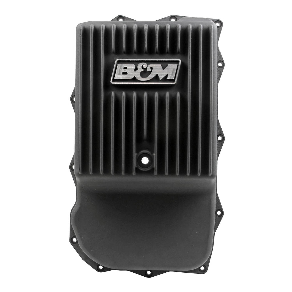 B&M automatic transmission deep pans provide additional fluid capacity and cooling ability. No modifications to the dipstick are needed. They include a drain plug for clean and easy fluid changes, and are available in chrome or cast aluminum. Filter extensions are included for those applications that require the filter to be moved closer to the bottom of the pan.Brand: B&M