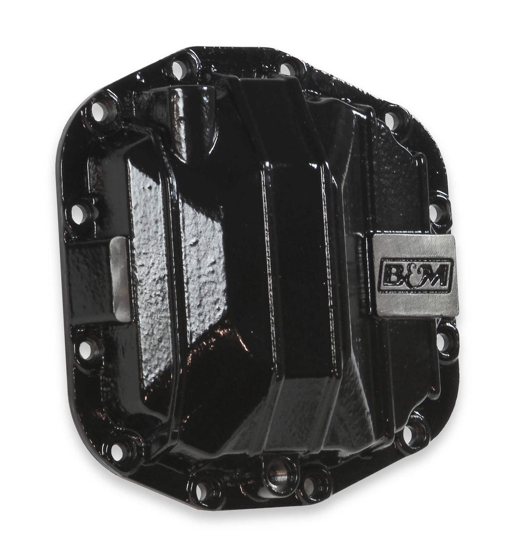 B&M differential covers are strong and cool! Cast and machined from premium aluminum alloy, they feature heavy-duty structural cooling fins, a larger fluid capacity, and high-strength magnetic drain plugs that aid in catching ferrous metal particles. B&M differential covers add some strength with extra cooling ability to your rear end.