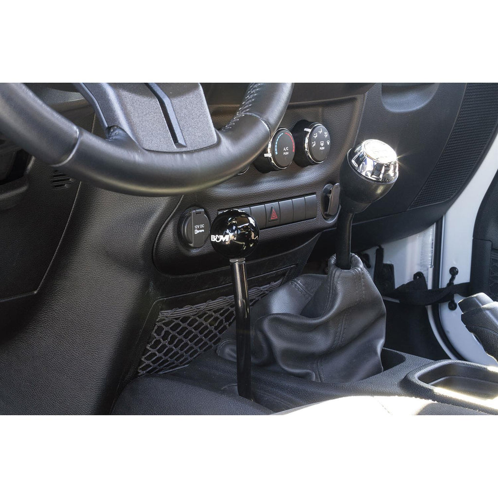 B&M extended transfer case handles allow for easy reach and operation. The extended length also provides additional leverage, which reduces the effort required to shift. They are available in 6061 T-6 billet aluminum or in heavy-duty 4340 steel. Both include black ABS shift knob and offer easy direct-fit installation. Shift in and out of gear ranges with ease using B&M extended transfer case handles.
