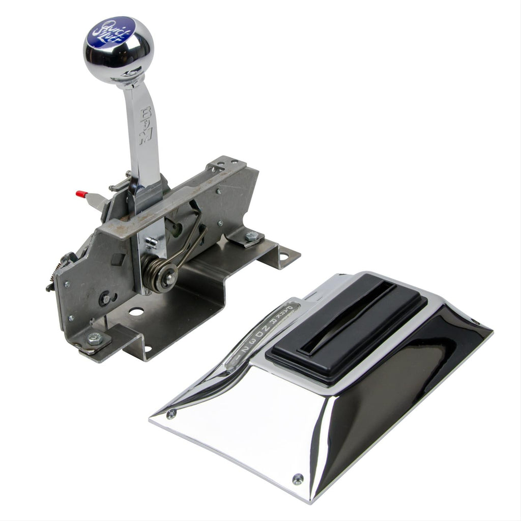 B&M QuickSilver automatic shifters have cable-operated ratchet action for dependability, and a chrome plated stick and cover for good looks. These QuickSilver shifters include an NHRA/IHRA-approved reverse lockout, a lighted gear indicator, and they will work with reverse pattern valve bodies.Brand: B&M