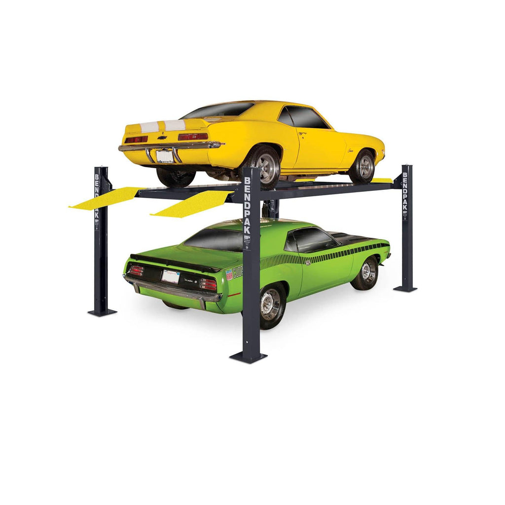 The BendPak HD-9XL 4-post lifts are about the size of a typical parking space, maximizing valuable floor space. These BendPak lifts are ideal for storing cars and trucks, ATVs, snowmobiles, jet skis, golf carts, boats, or anything else that needs to be up off the ground and safely in the air. If you've got at least a standard 8 ft. ceiling, you'll be able to make use of that wasted vertical space above your car. Trust in BendPak for all of your lifting needs.