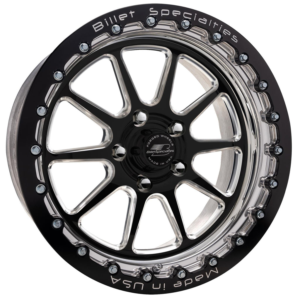 Billet Specialties AMC40 Malibu single beadlock black satin custom order wheels are part of the American Muscle Collection. Each wheel is precision-machined from forged 6061-T6 aluminum centers and then mated to a spun 6061 one-piece conventional lip barrel. They feature 10 tapered spokes, machined accents, a center hub designed for exposed lugs, and a scalloped functional beadlock ring. These beautiful 17 in. wheels are offered in a variety of widths, bolt patterns, and other fitment choices. (Additional finishes and/or beadlock options are also available.) ** Single beadlock works with tire bead bundles that are .625 in. or thicker.