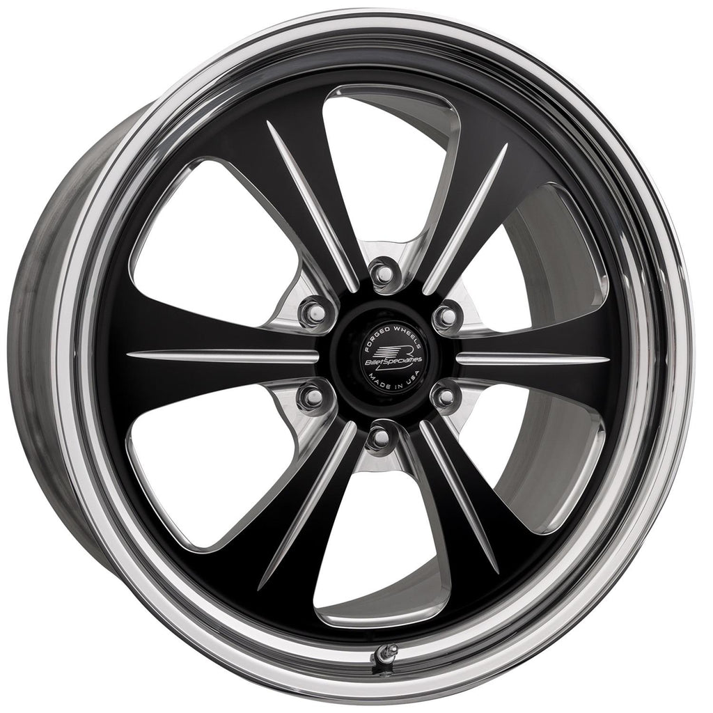 Billet Specialties AMC76 Fineline black satin custom order wheels are part of the American Muscle Collection. Each wheel is precision-machined from forged 6061-T6 aluminum centers and then mated to a spun 6061 one-piece conventional lip barrel. They feature six flared spokes with a decorative center cut, machined accents, and a center hub designed for exposed lugs. These beautiful truck wheels are available in a variety of widths, diameters, bolt patterns, and other fitment options for front or rear. (Additional finishes and/or beadlock options are also available.)