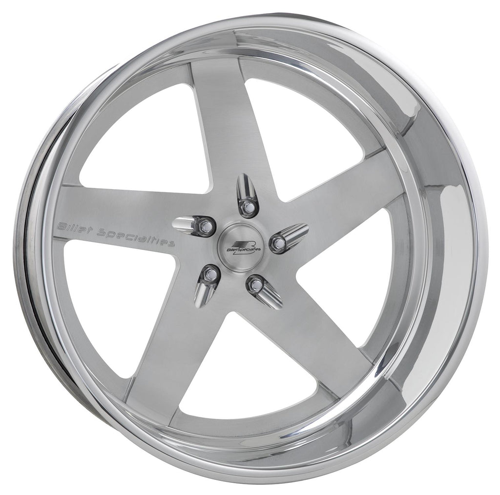 Billet Specialties BLVD Series 42 polished custom order big wheels make a bold statement of style that will separate your truck from the pack. They look great on a slammed pickup or an American classic with urban styling. Each 2-piece wheel is precision-machined from forged 6061-T6 aluminum centers for light weight, and then mated to a spun 6061 one-piece conventional lip barrel for strength and trueness. BLVD 42 rims feature a slight convex interior profile, five wide true directional spokes, and a center hub designed for exposed lugs. These beautiful wheels are available in a variety of size options and bolt patterns for the front and/or rear or your vehicle. A dynamic blend of style, strength, and performance!
