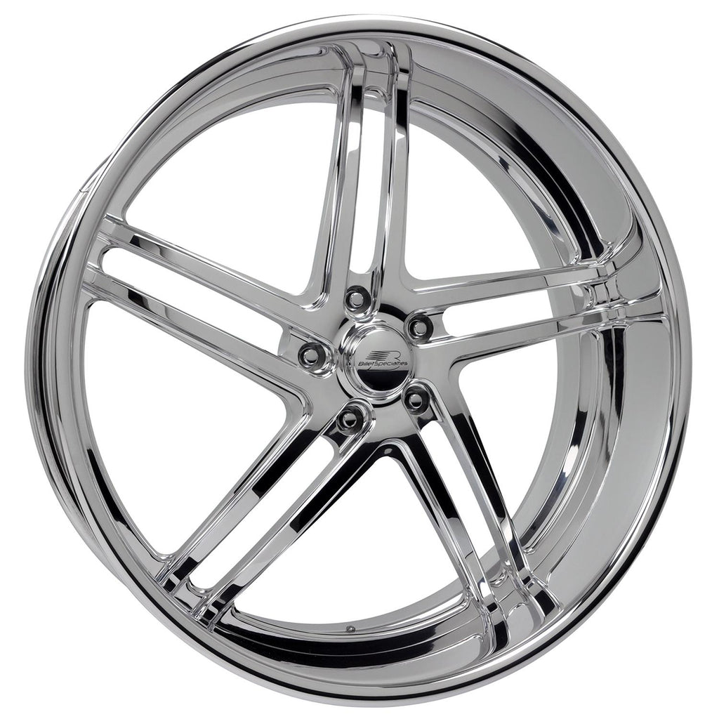 Billet Specialties BLVD Series 83 polished custom order big wheels make a bold statement of style that will separate your ride from the pack. They look great on a slammed pickup or an American classic with urban styling. Each 2-piece wheel is precision-machined from forged 6061-T6 aluminum centers for light weight, and then mated to a spun 6061 one-piece conventional lip barrel for strength and trueness. BLVD 83 rims feature five pairs of twin-spokes with beveled edges on an oblique slant, plus a center hub designed for recessed lugs. These timeless wheels are available in a variety of size options—including extreme custom widths through 16 in.—and bolt patterns for the front and/or rear or your vehicle. A perfect blend of style, strength, and performance!