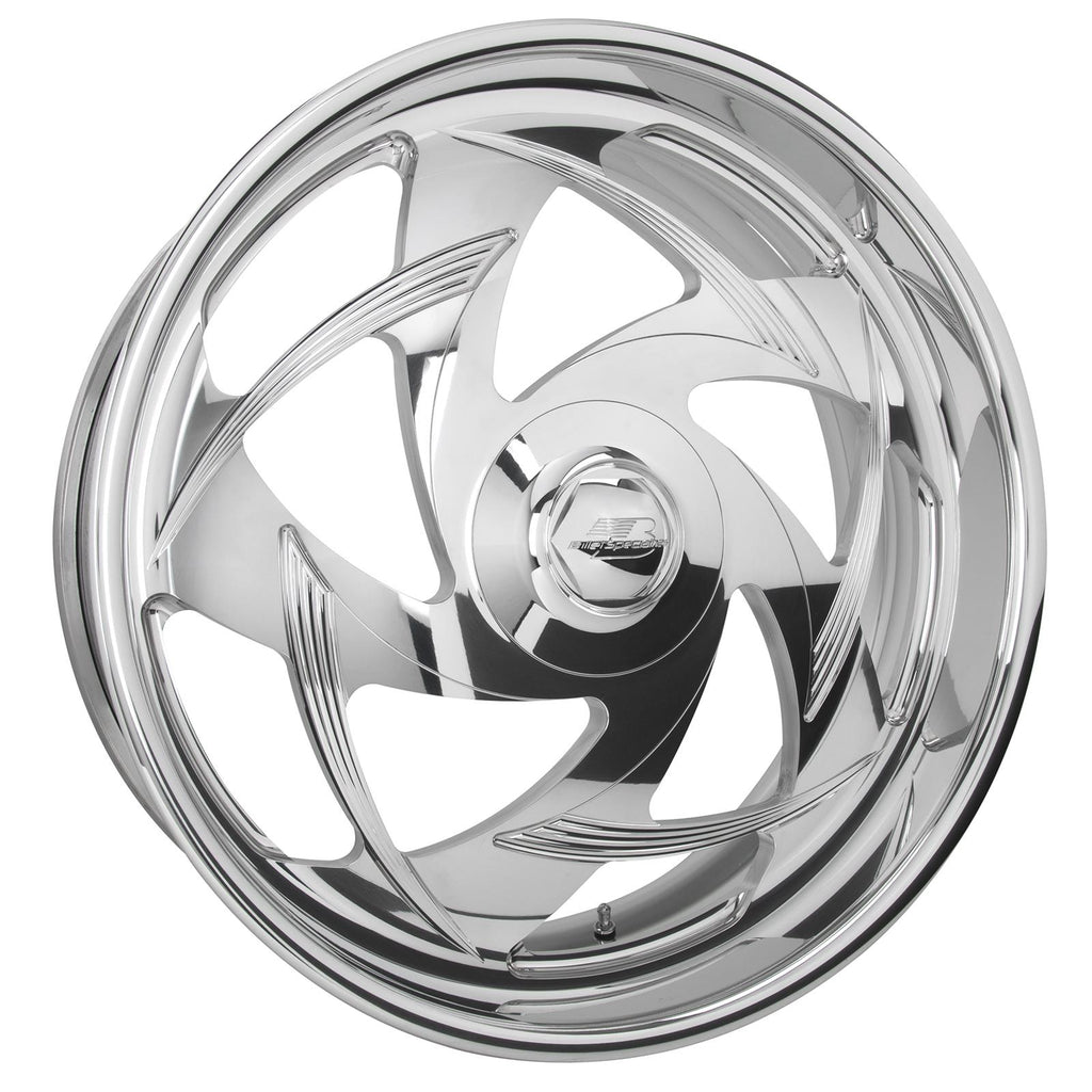Billet Specialties GS Series GS39 polished custom order big wheels make a bold statement of style that will separate your ride from the pack. Each 2-piece wheel is precision-machined from forged 6061 T-6 aluminum centers for light weight, and then mated to a spun 6061 one-piece conventional lip barrel for strength and trueness. GS39 rims feature five curved spokes with grooved crossover accents that create a sharp, swirling appearance; plus, a center hub designed for hidden lugs. These impactful wheels are available in a variety of size options for the front and/or rear or your vehicle.