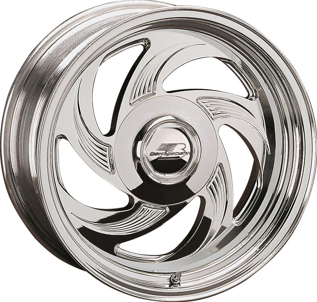 Billet Specialties GTP Series GTP97 polished custom order big wheels are perfect for the ever-growing OBS truck trend, '90s styling, and full size cruisers. Each 2-piece wheel is precision-machined from forged 6061 T-6 aluminum centers for light weight, and then mated to a spun 6061 one-piece conventional lip barrel for strength and trueness. GTP97 rims feature five curved spokes with grooved accents creating a swirl effect, plus hidden lugs. These wheels will surely make your vehicle stand out from the crowd.