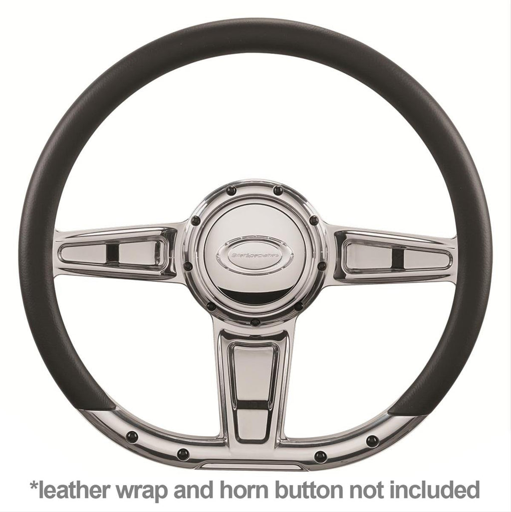 Billet Specialties half-wrap steering wheels offer a fresh new look for your vehicle's interior. These aluminum wheels are offered in a variety of sizes, styles, and spoke quantities—with either a polished or black anodized finish. The front half can be covered with your choice of leather (numerous colors) or simulated burlwood (all sold separately). The backside of each steering wheel has milled and polished finger notches for added comfort and control. Countersunk screws on the backside hold the half-wraps securely in place. Order the model tailored to your style!Brand: Billet Specialties