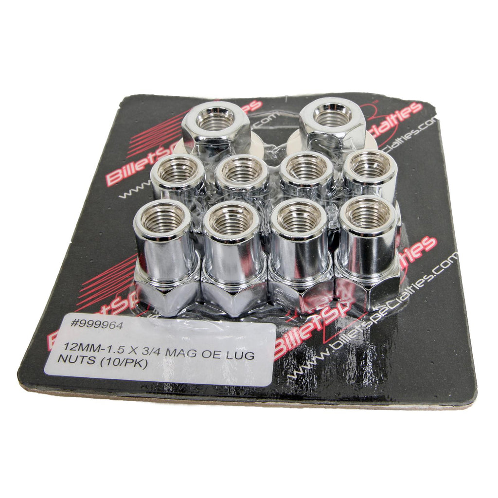 Billet Specialties offers a variety of lug nuts for their most popular wheels. These wheel fasteners are manufactured from high-quality materials and are chrome plated for a dazzling appearance. Billet Specialties lug nuts are available in different thread sizes, seat styles, and your choice of open or closed end styles to fit your specific application.Brand: Billet Specialties