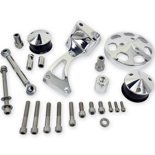 Notes: Kit includes: A/C bracket, turn buckle with rod ends, idler pulleys and compressor clutch cover.